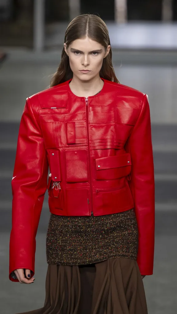 Veronica Leoni, la nouvelle directrice créative de la marque (et sa première piste féminine), a montré sa collection d’automne à une foule éparpillée avec des célébrités et des figurines hérités (Klein elle-même).