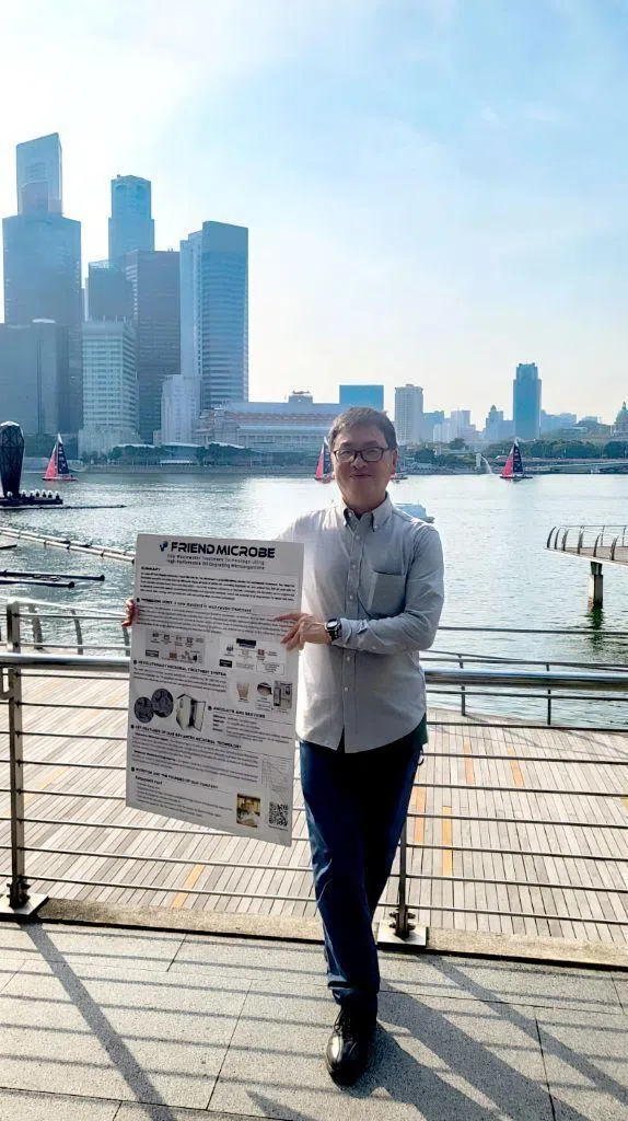 Le professeur Katsutoshi Hori a consacré environ 40 ans à la recherche sur les micro-organismes et les enzymes. On peut le voir ici à Marina Bay exposant ses recherches à Tech Innovation 2024.