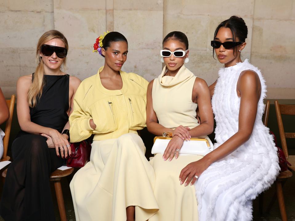 VERSAILLES, FRANCE – 29 JUIN : Gaia Reposit, Tina Kunakee, Lori Harvey et Laura Harrier assistent au défilé Jacquemus Menswear Printemps/Été 2026 dans le cadre de la Fashion Week de Paris le 29 juin 2025 à Paris, France. (Photo par Arnold Jerocki/Getty Images pour Jacquemus)