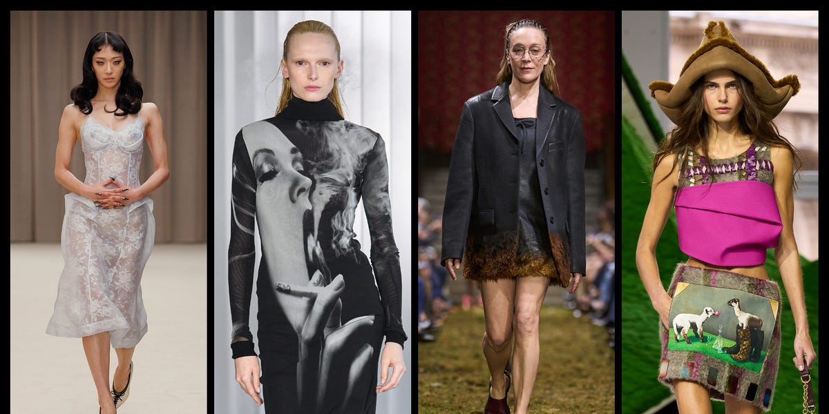 Mewmew arrive avec un message sur le retour à sa vraie nature. La marque connaît toujours une croissance massive (le groupe Prada a connu une croissance de 9 % sur un an en 2025, en grande partie grâce à Miu Miu) et a emmené le public dans un voyage d’introspection. Comment pouvons-nous exister en tant qu’individus dans un monde vaste et en constante évolution ?