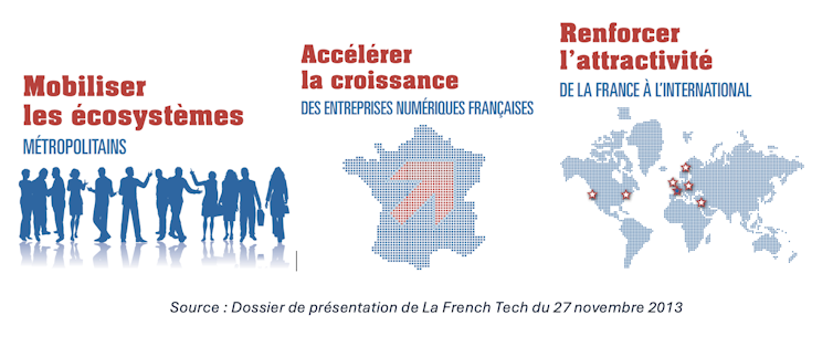 Il ne s’agit pas non plus de la première initiative européenne de ce type. Au début des années 2010, de nombreux gouvernements à travers le monde ont choisi des politiques publiques visant à soutenir l’entrepreneuriat innovant, comme par exemple la « Tech City » au Royaume-Uni en 2010, « l’Industrie 4.0 » en Allemagne en 2011 ou la « Italian Startup Act » en Italie en 2012. Le dépôt auprès de l’INPI de la marque publique « La French Tech » et la publication en novembre 2013 du dossier de présentation de La French Tech signent le début de l’intervention de l’État français, axée sur trois leviers de intervention : la mobilisation des écosystèmes métropolitains, l’accélération de la croissance des start-up et le renforcement de l’attractivité internationale de la France.