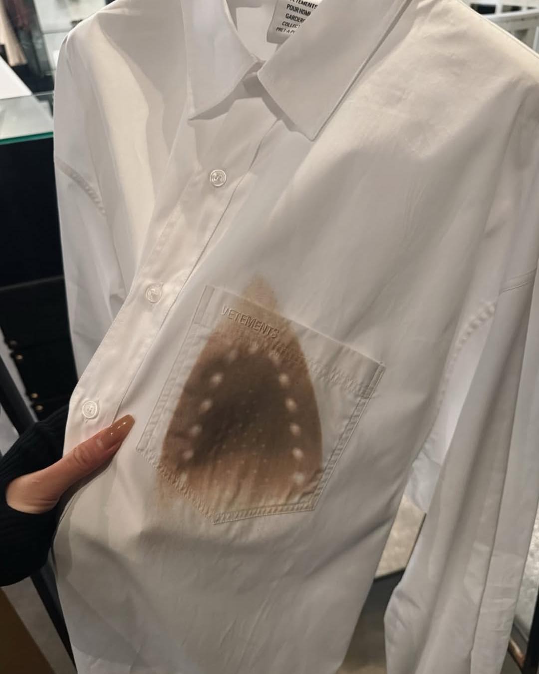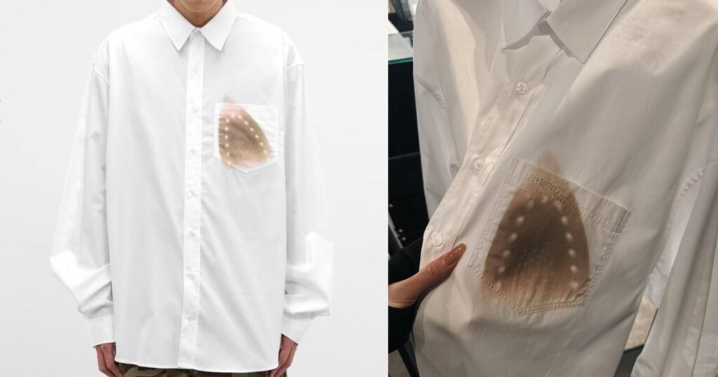 La marque de luxe suisse Vetements a présenté une chemise graphique « iron burn ». Oui, c’est intentionnel.