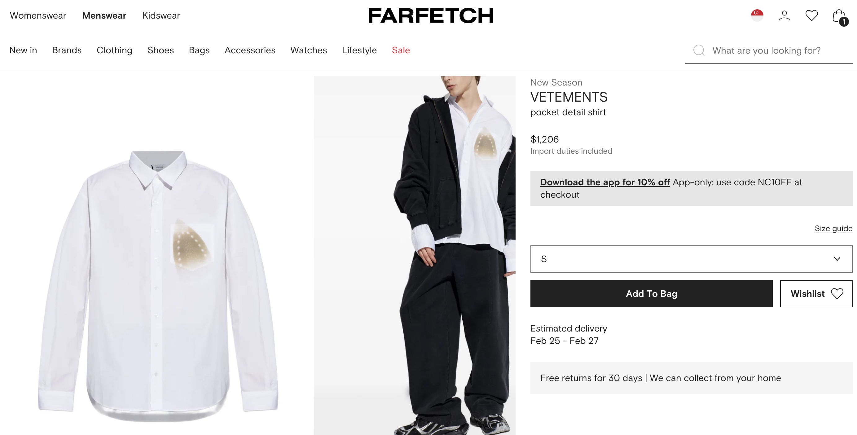 Capture d’écran via Farfetch