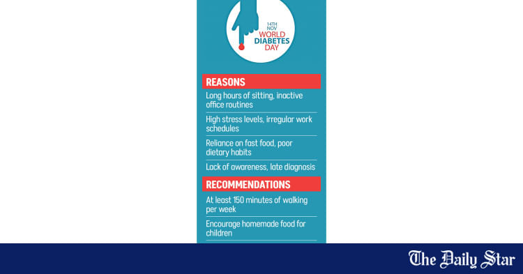 Le professeur national AK Azad, président de l’Association du diabète du Bangladesh, a déclaré que bien que des données nationales récentes ne soient pas disponibles, la tendance montrait clairement une augmentation rapide.
