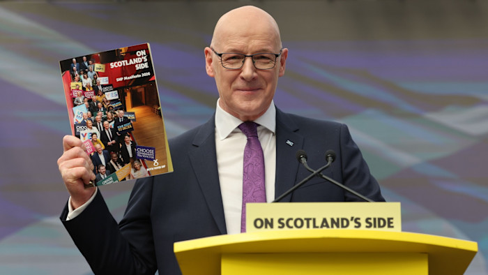 Le Premier ministre et chef du SNP, John Swinney, a déclaré qu’il utiliserait la décentralisation des pouvoirs en matière de santé publique pour réduire les coûts hebdomadaires des magasins en exigeant que les grands supermarchés proposent des prix plafonds sur une ligne unique sur les produits essentiels tels que le pain, le lait et les œufs.
