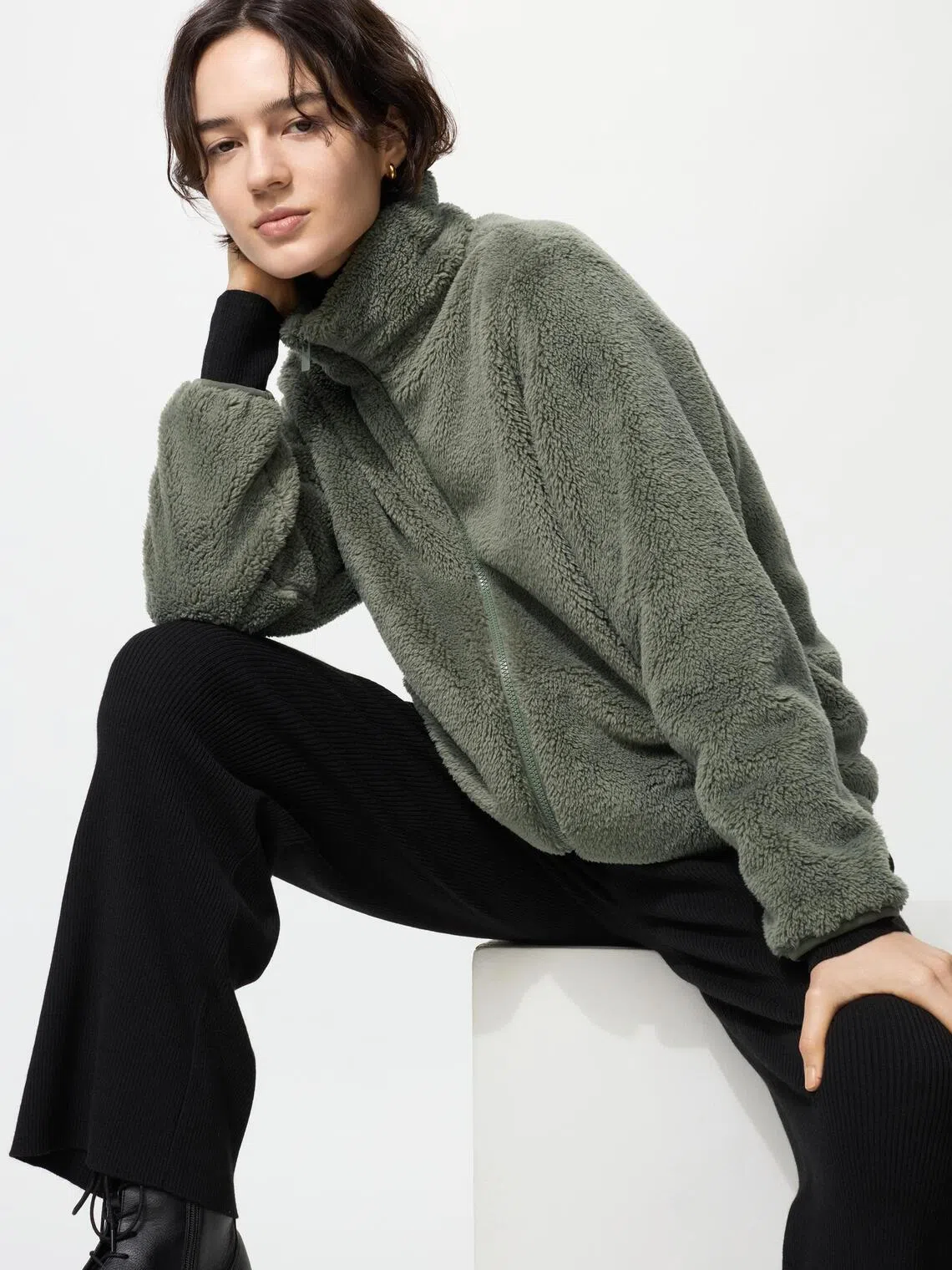 Veste à manches longues en polaire moelleuse Uniqlo, verte.