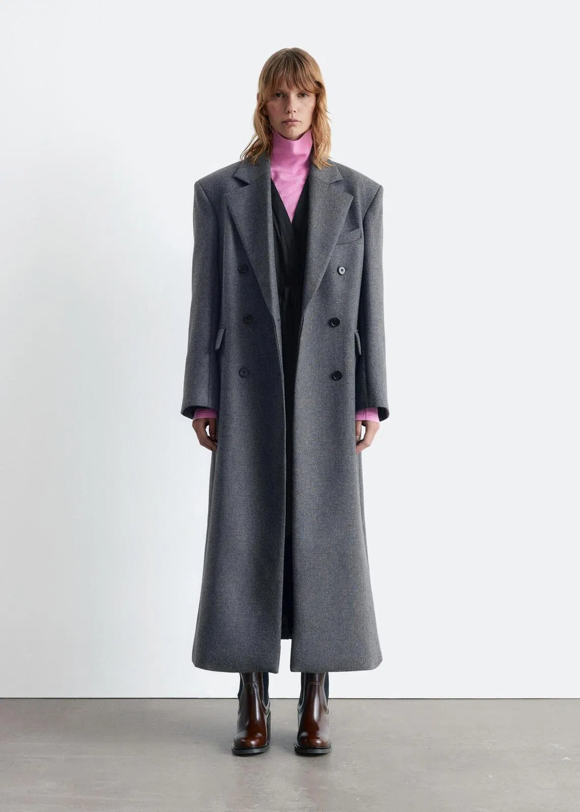 & Other Stories manteau long en laine gris chiné.